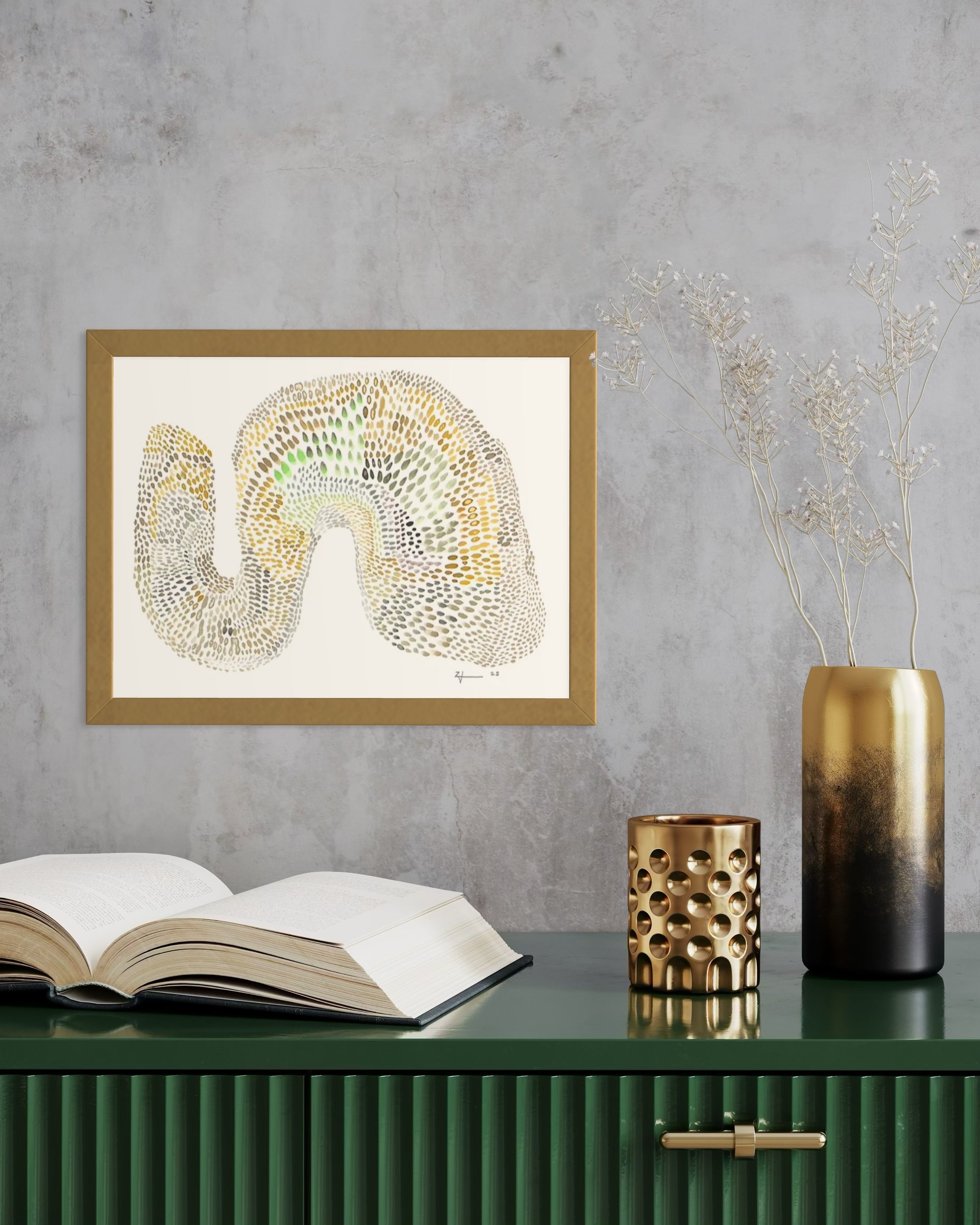 The piece reflects a fascination with organic patterning and the quiet intelligence of nature. Each mark is deliberate yet intuitive, contributing to a larger whole that feels both grounded and in motion. This work stands as a testament to transformation, continuity, and the beauty of flowing.